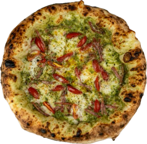 Basilikum Pesto, Mozzarella, Promodori Rossi, Salame